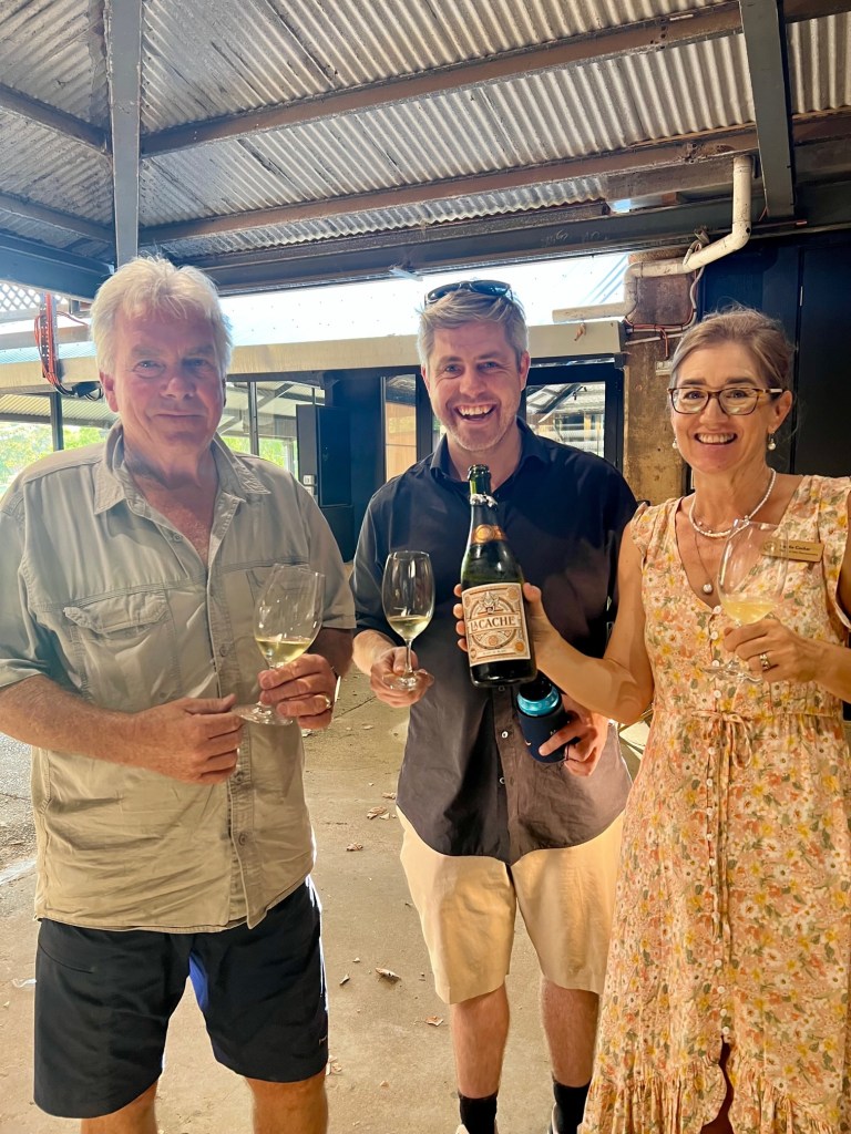 John, pictured here with Edward and his colleague Vanessa is a pioneer sparkling wine maker. He makes the bubbles for the bulk of the wineries in Western Australia or he has been consulted about how to make the beautiful wine using Methode Traditionale. This was a bottle of his own wine which had been on lees (I think he said) for 8 years.