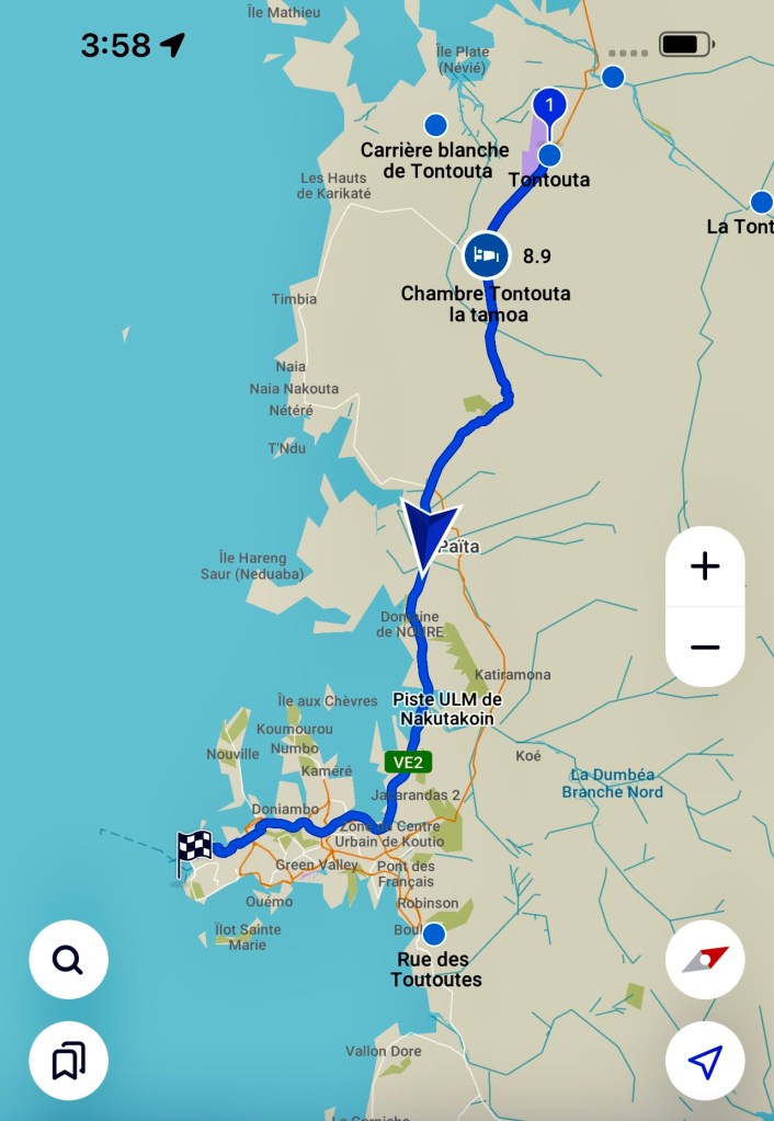 This map shows where we travelled – it took around 45 minutes (or half the time it took to get from Brisbane to the New Caledonia!!) to get to our accommodation. And by this stage, we were feeling a little weary. The first day of any trip we find is quite tiring – what with getting to the airport and parking, catching the shuttle bus to the terminal and then checking in and going through the ‘customs’ procedures before actually finding the gate, boarding the plane and finding our seat. By now, we are ready for a nap.