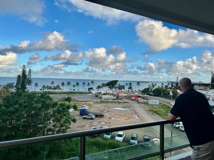 Mick ordered a 500cl beer and I had a glass of red wine. The beer cost 1050 XPF (or $14.50AUD) and the glass of wine cost 1200 XPF (or $16.60AUD). Both prices were slightly more than we would expect to pay in a similar venue at home, but we had also read that New Caledonia is quite expensive. I was glad that while Mick waited for our bags to appear at the carousal once we landed, I bought two bottles of Bordeaux wine at the Duty Free Shop, which now look like bargains.