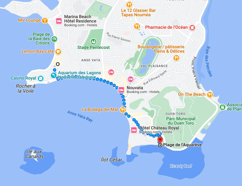 My day started with a walk in a new direction from our accommodation – towards an area known as Parc Ouen Toro, and a fancy hotel called Château Royal, which had its own private beach. Well, really it had just built a big fence around the headland to keep others out.