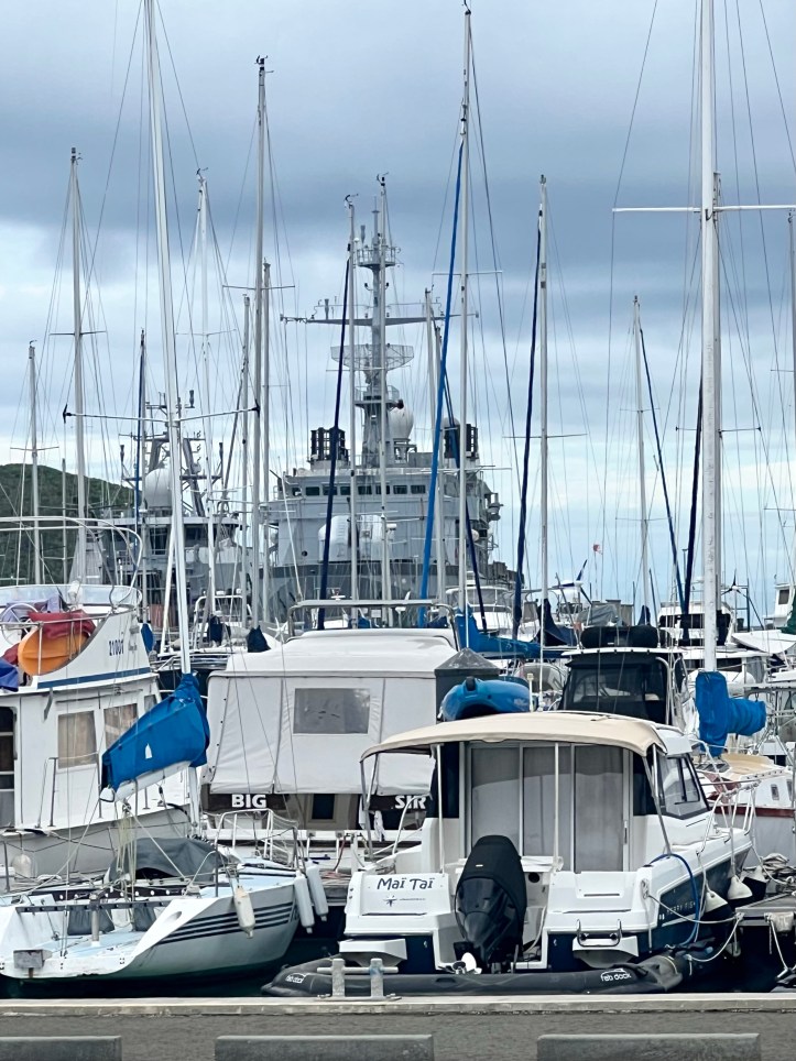 I walked past the marina again, and this time I spotted a couple of naval vessels, right at the back of the rows of boats.