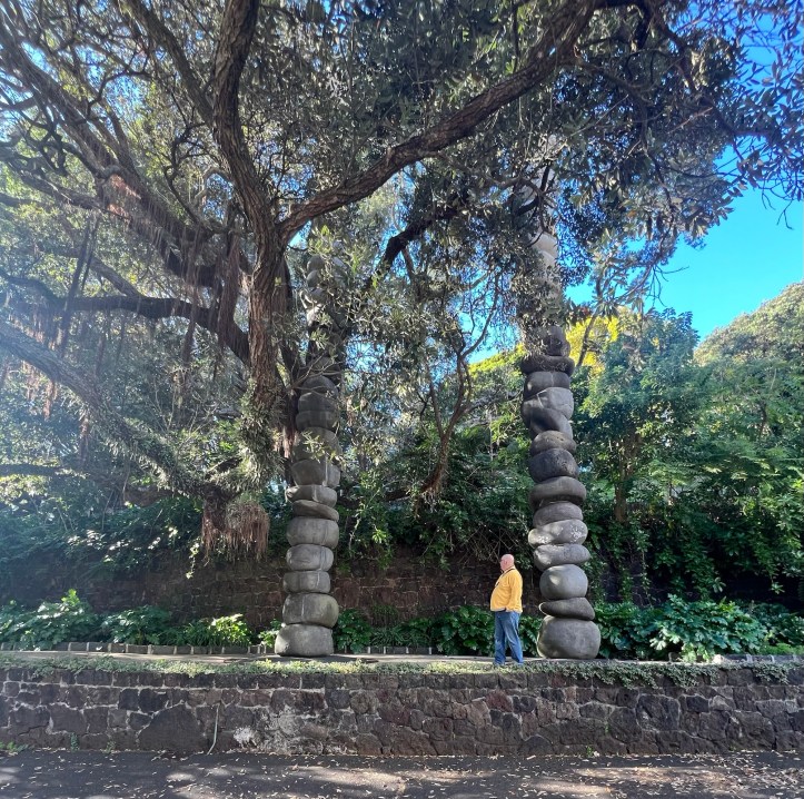 After breakfast, Mick and I headed off to visit the Auckland Art Gallery. Our walk took us along the edge of Albert Park where we stumbled across a huge sculpture (The Gateway). This photo does not do it justice as the top has further pieces joining the two columns of stones. But you can get a sense of the size of it here.