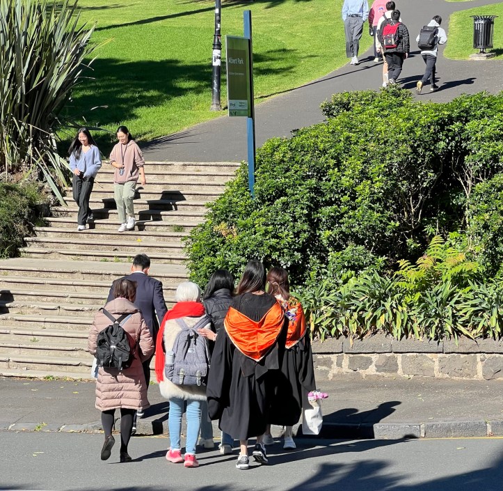 Our accommodation is near Auckland University, and during our stay the university has been holding its graduation ceremonies. We have seen many young students with their families wandering the streets either heading to or from the ceremonies. And, again, the majority of the students we have seen are of Asian descent.
