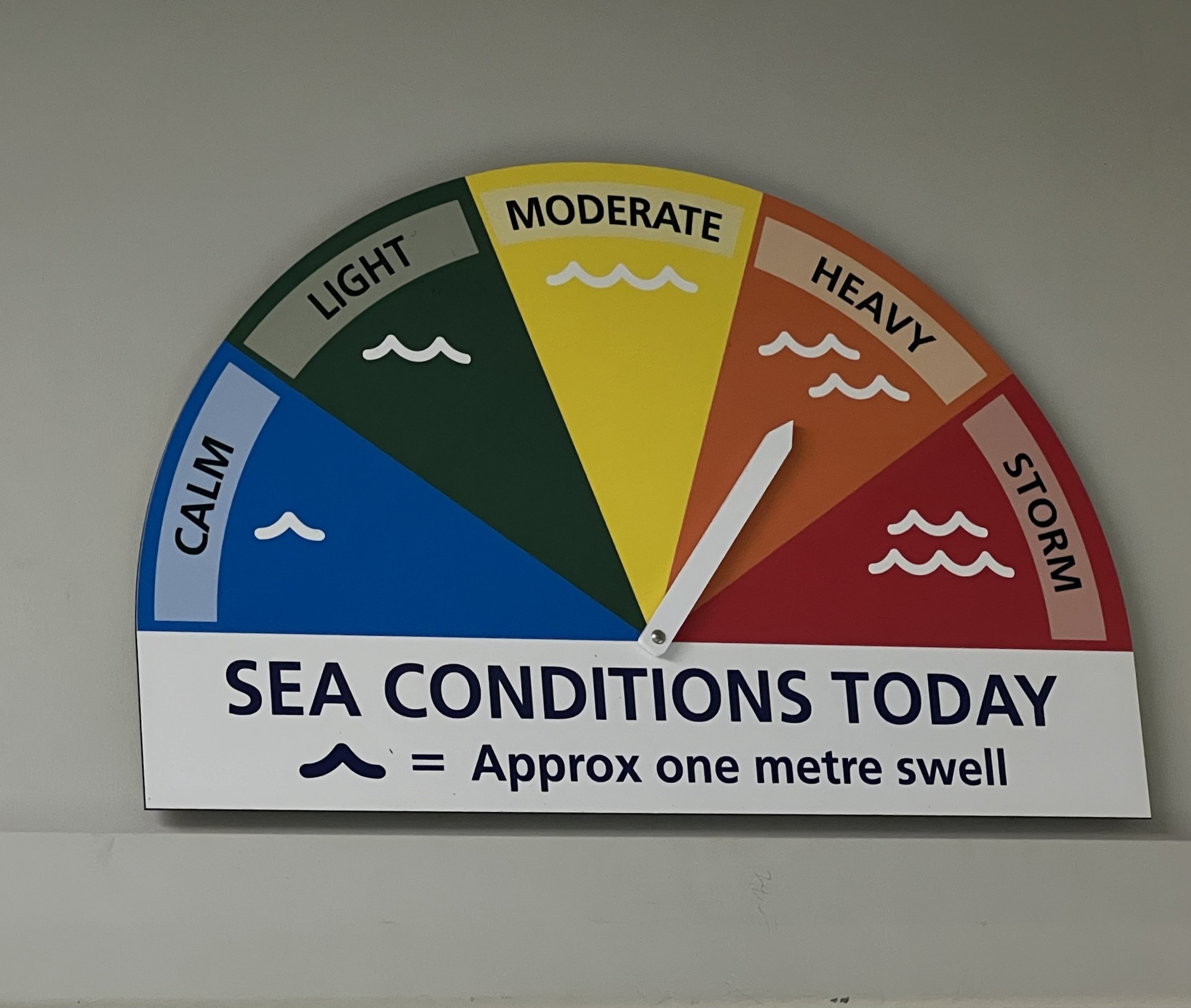 Announcements were being made in the terminal, warning of the possibility of high seas following a gale in the Strait last evening.