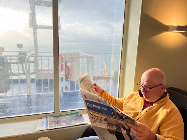 Mick was hoping for some high seas, and I was glad I had paid an extra $86NZ each to have a seat in the Premium Lounge. At least we would rock and roll in comfort.