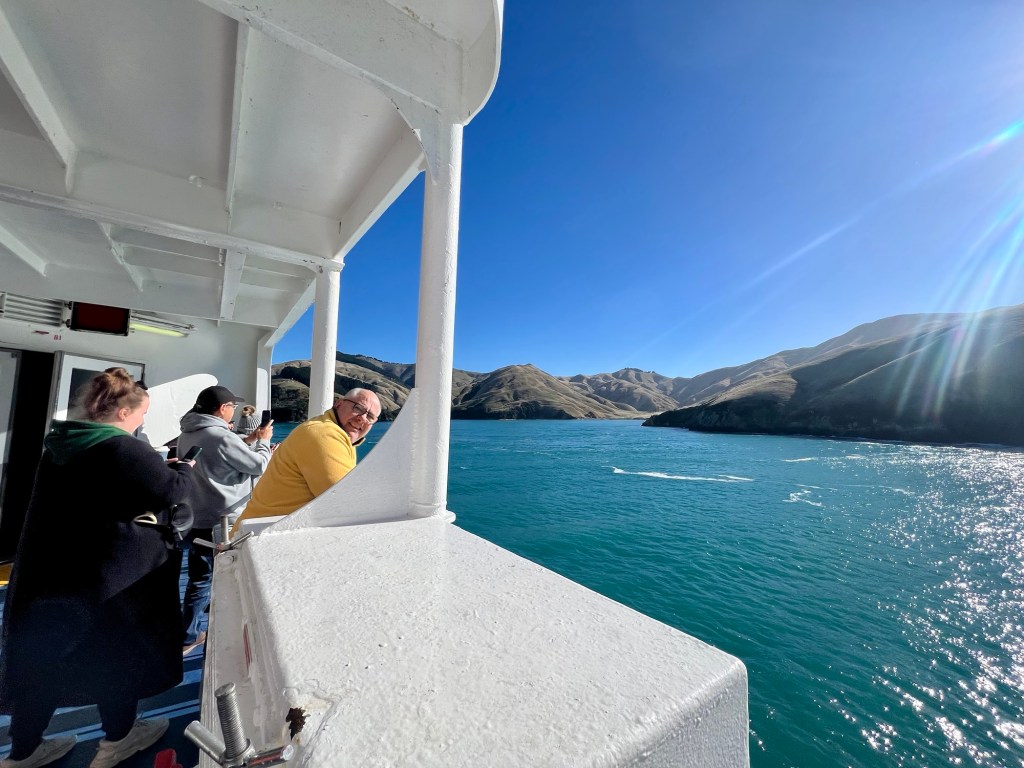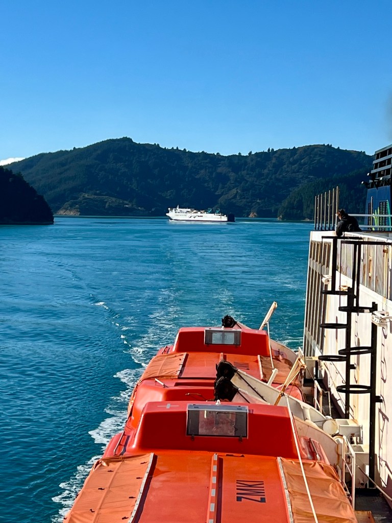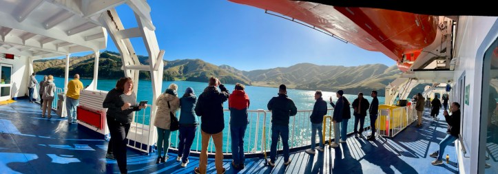 We ventured outside when we passed through Marlborough Sounds – weaving through small islands and passing mussel farms on our way towards Picton.