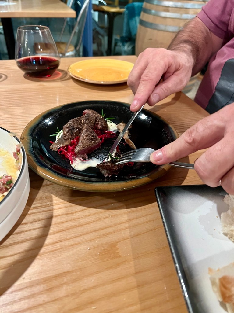 For dinner we first selected the bar the ‘Thirsty Pig’ where we chose an Otago Pinot Noir each while we perused the menu. We were very disappointed with the wine as it had been opened for awhile, but the locals didn’t seem to mind. Actually, most of the locals were drinking anything but wine. Beer was the first choice.