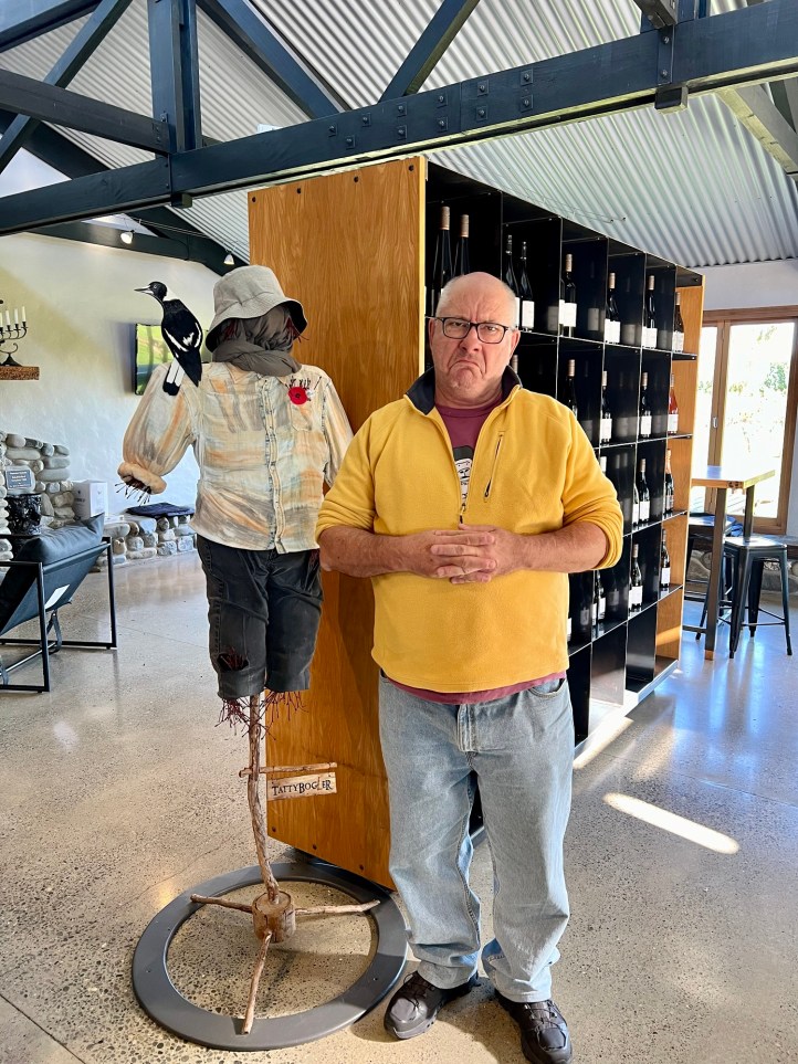 Another range of theirs is the Tatty Bogler, which is Scottish for scarecrow. Neil was able to confirm that as correct. I really liked the 2019 Tatty Bogler Chardonnay ($35NZ), but the fruit was grown in Central Otago. Just before we left while Mick was paying for the wine, Hugh gave Mick a small glass of red wine for me to taste. It was a blend of 2 red wines. He had assumed I was good at this ‘blind tasting’. I disappointed him. It was a bubbles made from Pinot Noir and Malbec. I did not guess the Malbec. And it was very unusual and very nice.
