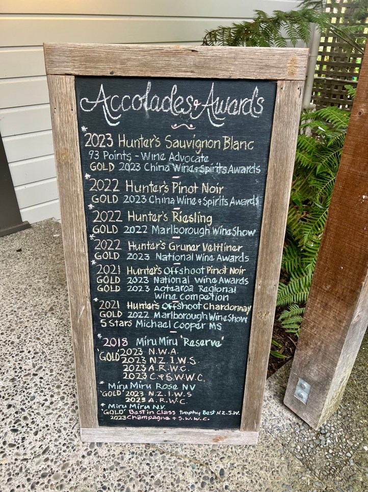 The wine tasting here was led by a recent newcomer to the winery, but she was very knowledgeable and insisted on telling us the story behind the wines. Special mention must go to the Hunter’s MiruMiru – their NV bubbles made using methode traditionelle. The name MiruMiru means ‘bubbles’ in Maori, and the winery has trademarked the use of the name.
