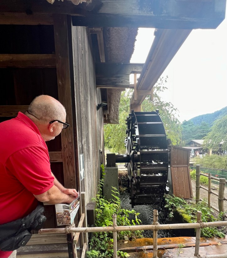 Mick was keen to see the traditional water wheel up close, but was disappointed to see that it was not connected to the mill.