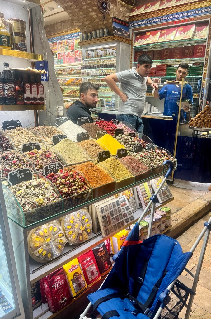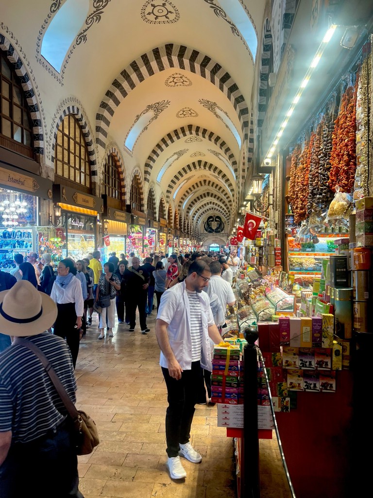 Rustem Pasha Mosque, which was completed in 1563 ( more than 60 years before the Blue Mosque was completed), is located almost inside the Spice Bazaar, actually, just on the edge of it. As I walked through the Spice Bazaar it had a better ‘feel’ to it than the Grand Bazaar – it was certainly much smaller and the crowds were not as massive.