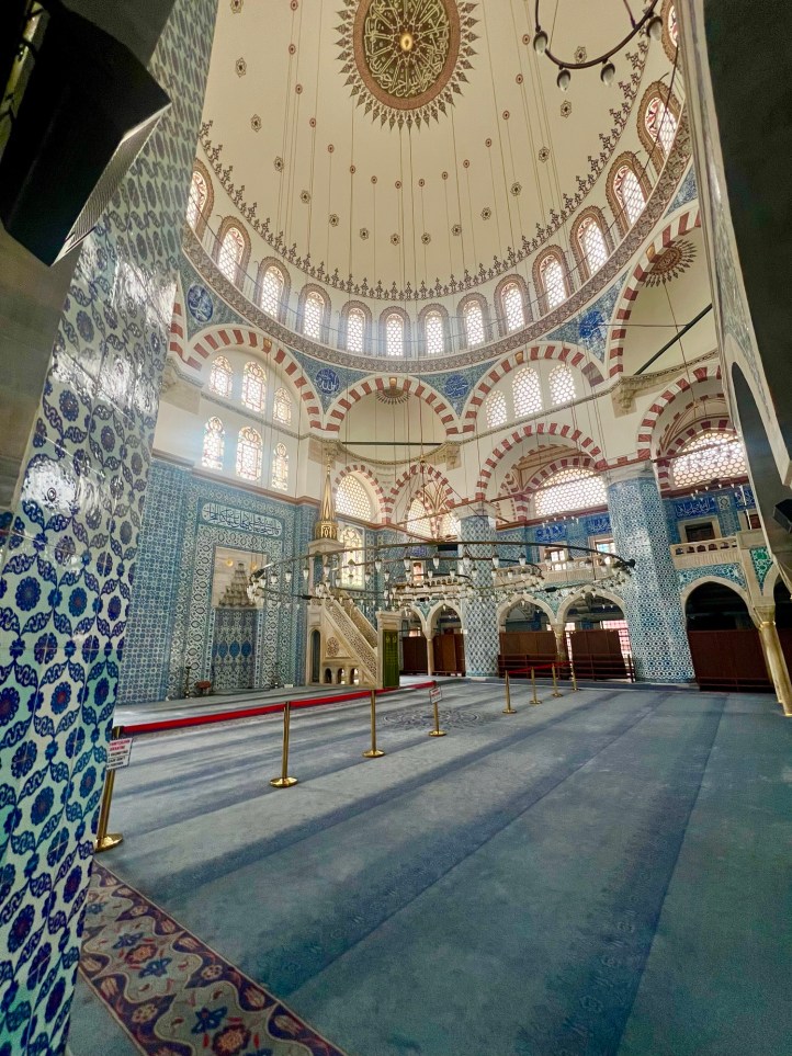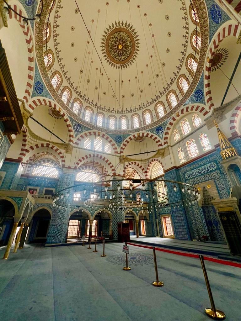 Considered one of the most embellished mosques of the Ottomans, its inside walls are covered in iznik tiles as well. These intricately designed blue tiles come in a wide variety of floral and geometric patterns. The mosque has a single minaret.