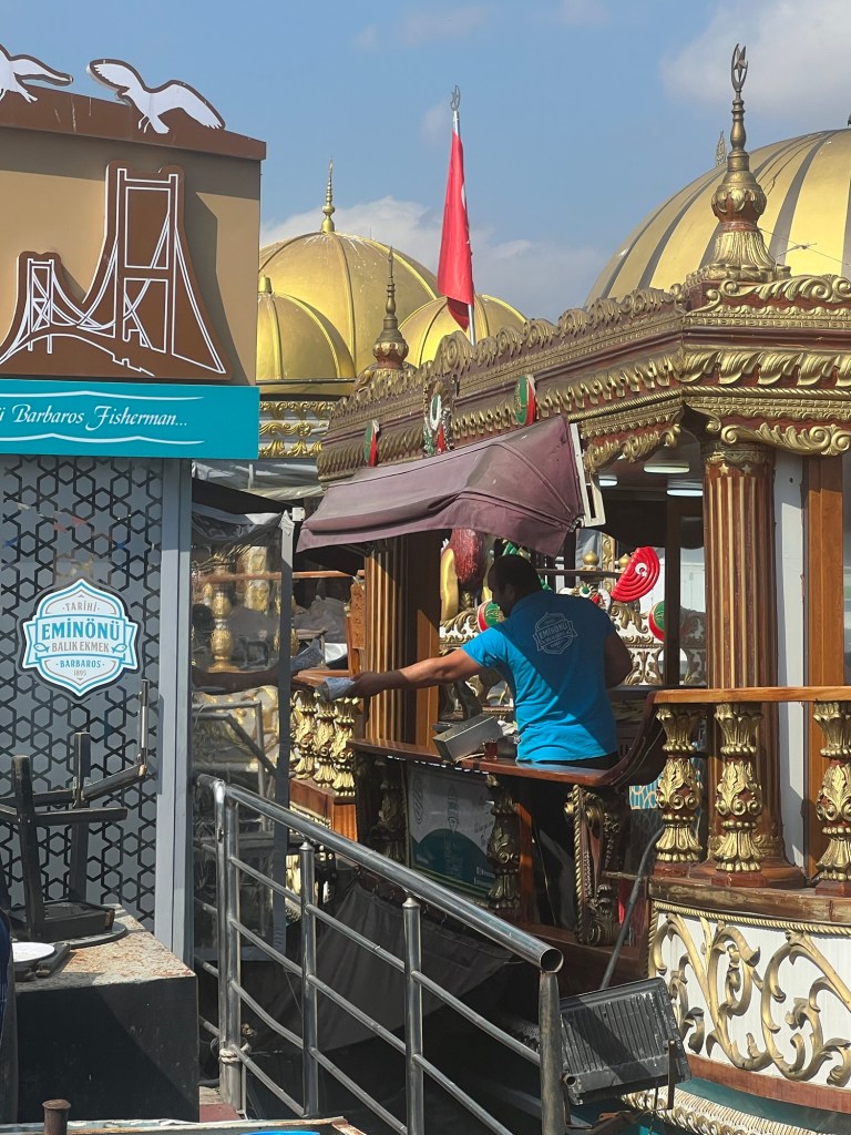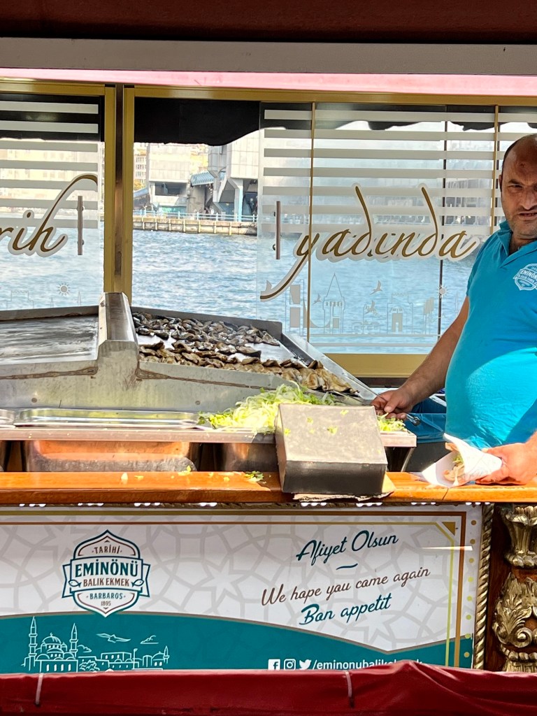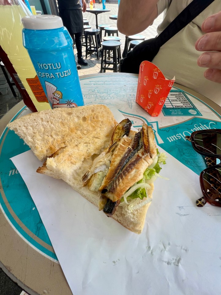 The local delicacy is known as Balik Ekmek, and costs 150 Turkish Lira (or $6.50AUD). There were several of these boats, selling the same thing, as well as several restaurants located beneath the Galata Bridge.