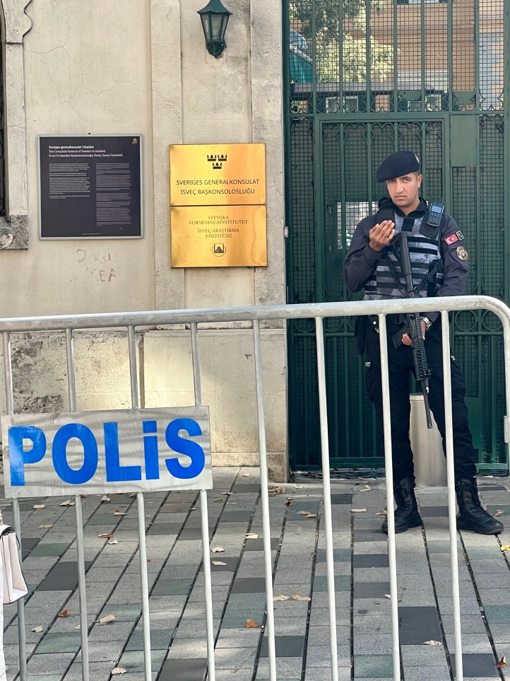 An armed guard was on duty in front of the Swedish Consulate – and not too happy I snapped this shot. Several others, including the French Consulate, did not have that level of security.