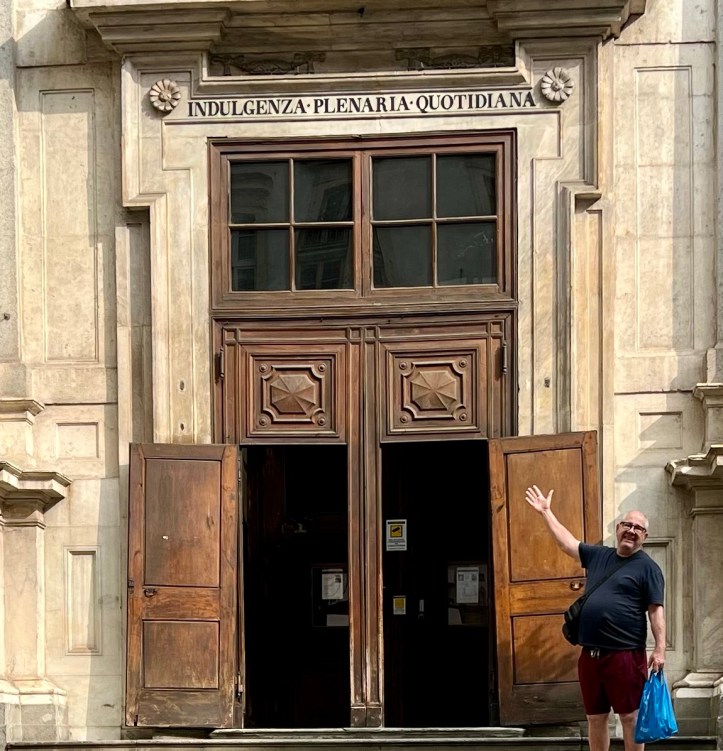 We decided it was time to head back to our apartment. On our way we were able to buy a Ventolin inhaler for Mick at a chemist (for €4, which is very cheap), and then Mick spotted this chiesa he wanted to have his photo taken in front of. He always tells me that he still has hundreds of plenary indulgences left from his days as a young boy .
