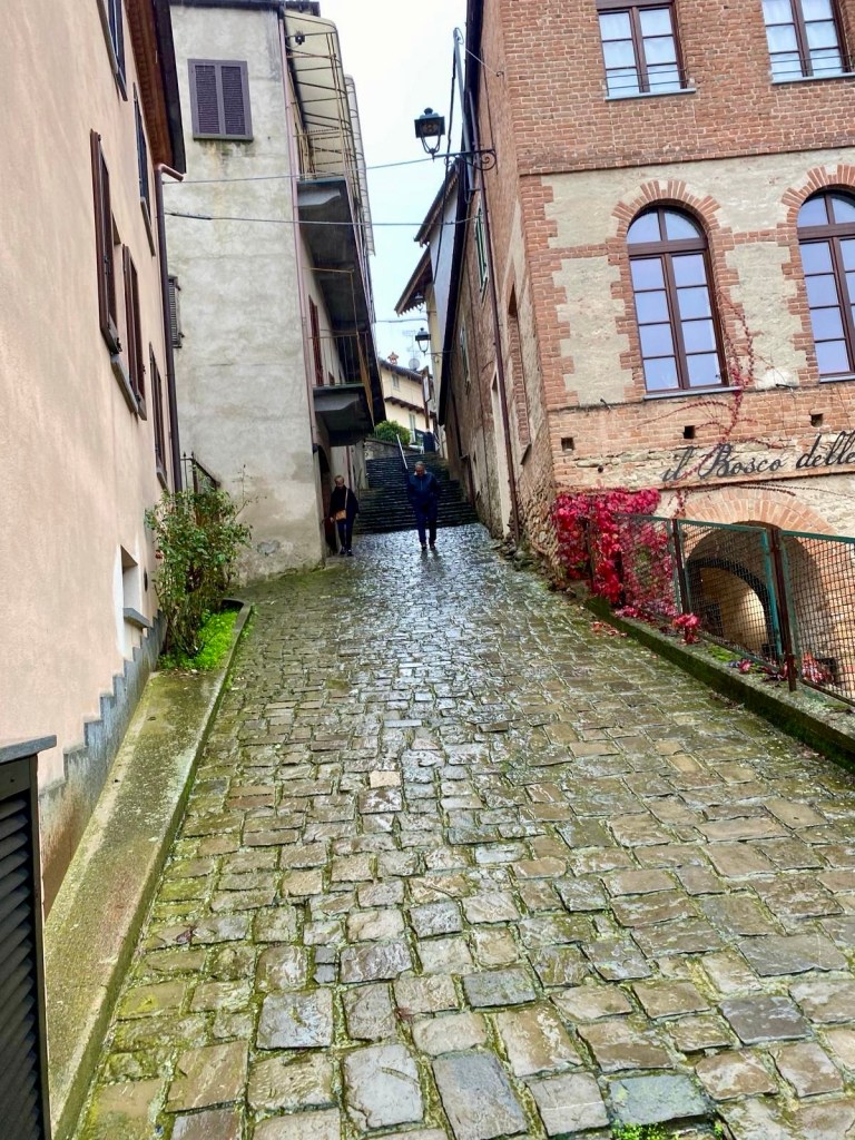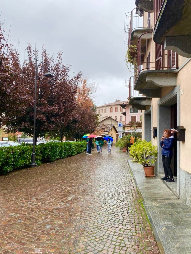 Our next stop was in La Morra – the drive was spectacular even with the rain. We needed lunch by now and found one of the few open restaurants very close to where we could find a park and we all enjoyed pizza.