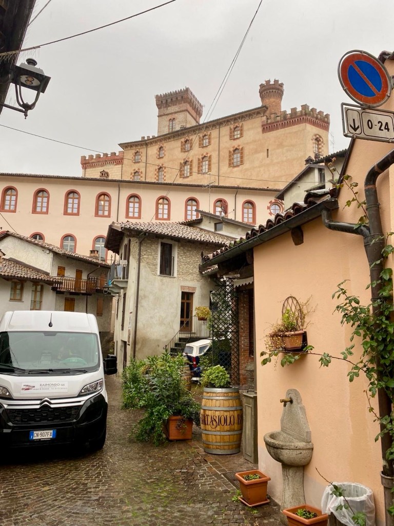 We drove through the township of Barolo on our way to the castle, looking for somewhere to enjoy a coffee. So did loads of other people. But we were all disappointed. Everything was “chiuso“.