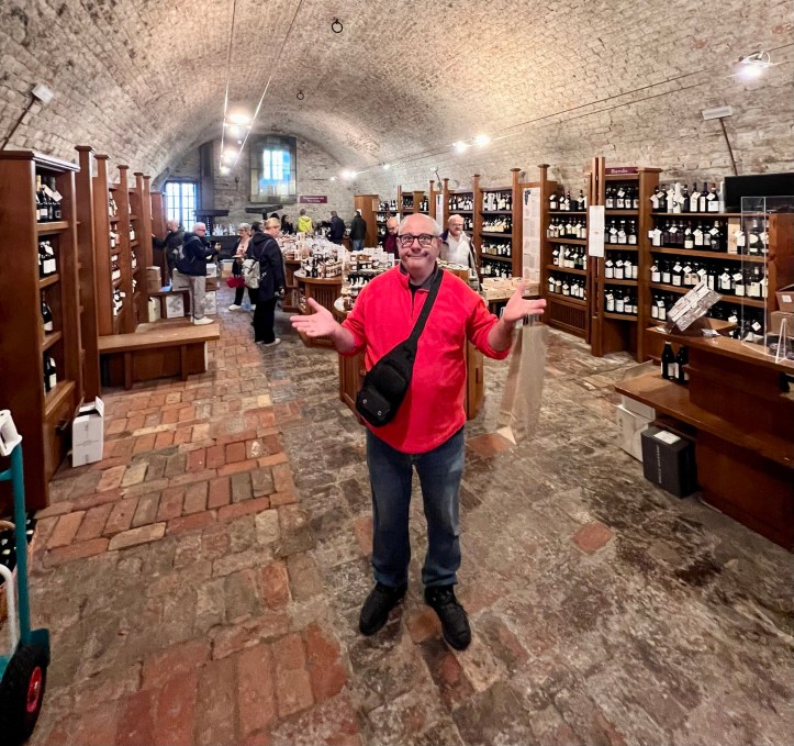 We didn’t end up spending much money in the cantina, but we did spend a lot of time. While we were there, some other patrons arrived, obviously knowing more of what they were after than we did. One French couple bought two 6 packs of wines they wanted for €800 (without tasting anything) and then decided to buy another bottle they did try for €60. The second young Italian women in the photo spoke to them in perfect French, after speaking with us in perfect English. Very clever.