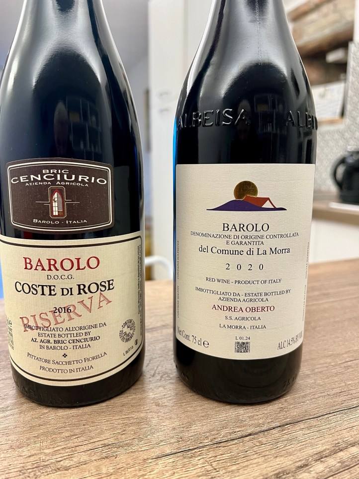 After such a big day, I drove us home to Novello and we had a lazy few hours before enjoying a glass of a Nebbiolo our host had left for us in our apartment – as we plan on tasting those Barolos we bought today tomorrow evening.