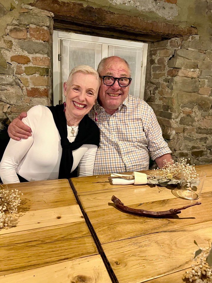 Mick and I walking home after another wonderful day in Novello with our dear friends Jeanie and Michael.