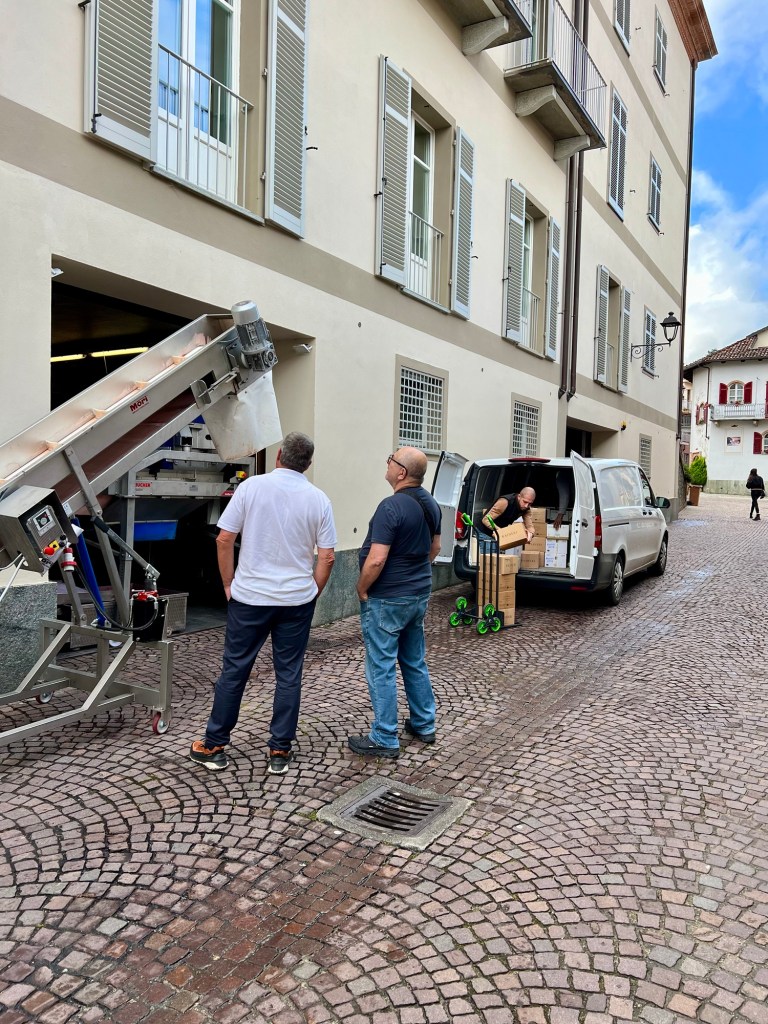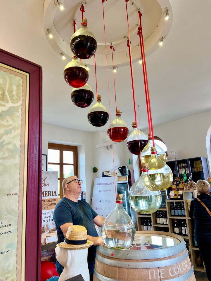 We agreed we should return to Barolo so we could walk through the little village that has a reputation for being very pretty and with loads of options for tasting and buying local wines. It was much busier today now that the rain had stopped, and it was a Friday after all. Eventually we found a park, not as close as the one we found yesterday, but the walk into the centre of the town gave us the chance to see into two wineries where wine making was well underway.