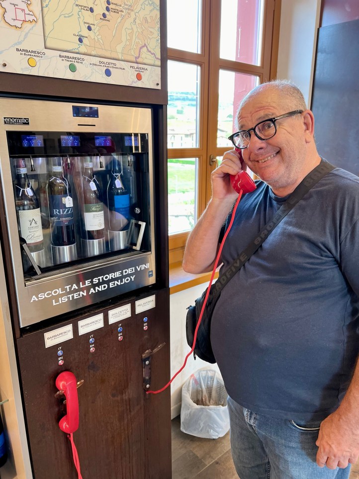 Finally there was a clever display where you could purchase a small sample of a wine and using this red handset, you could listen to quite a detailed story about the wine.