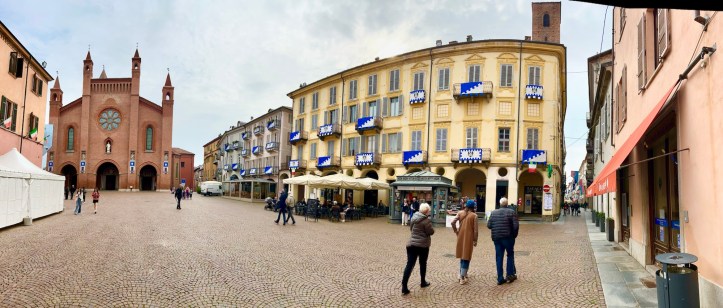 Our visit here was quite short; we continued on to Alba – a much bigger place with a population of more than 30,000. This is the town that is famous for wines, but especially Barbera d’Alba, and of course for white truffles. It holds an annual White Truffle Fair, around this time of the year, but not today thank goodness or we wouldn’t have found a park.