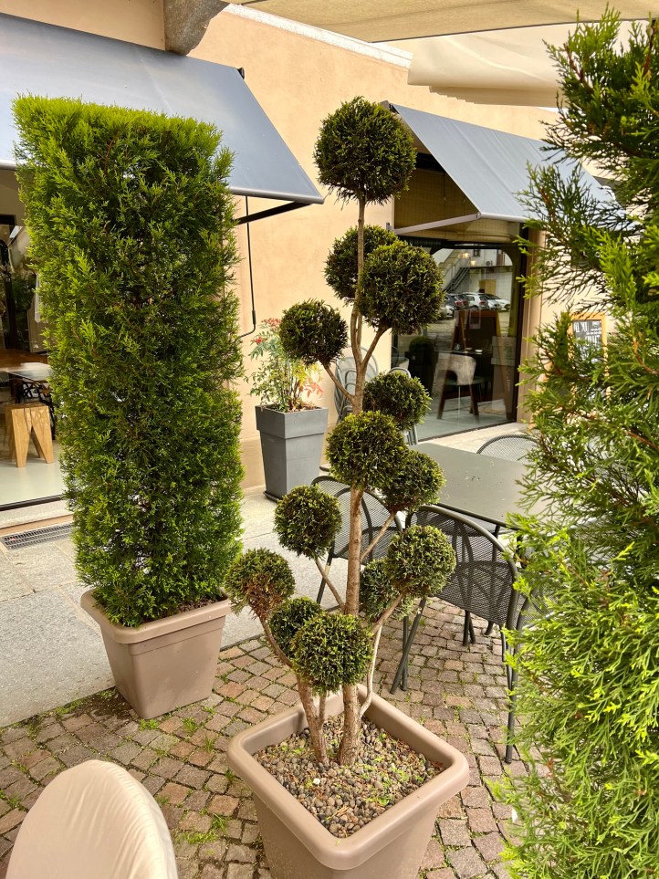 These trees were used to separate two outside dining areas for different restaurants in Alba.