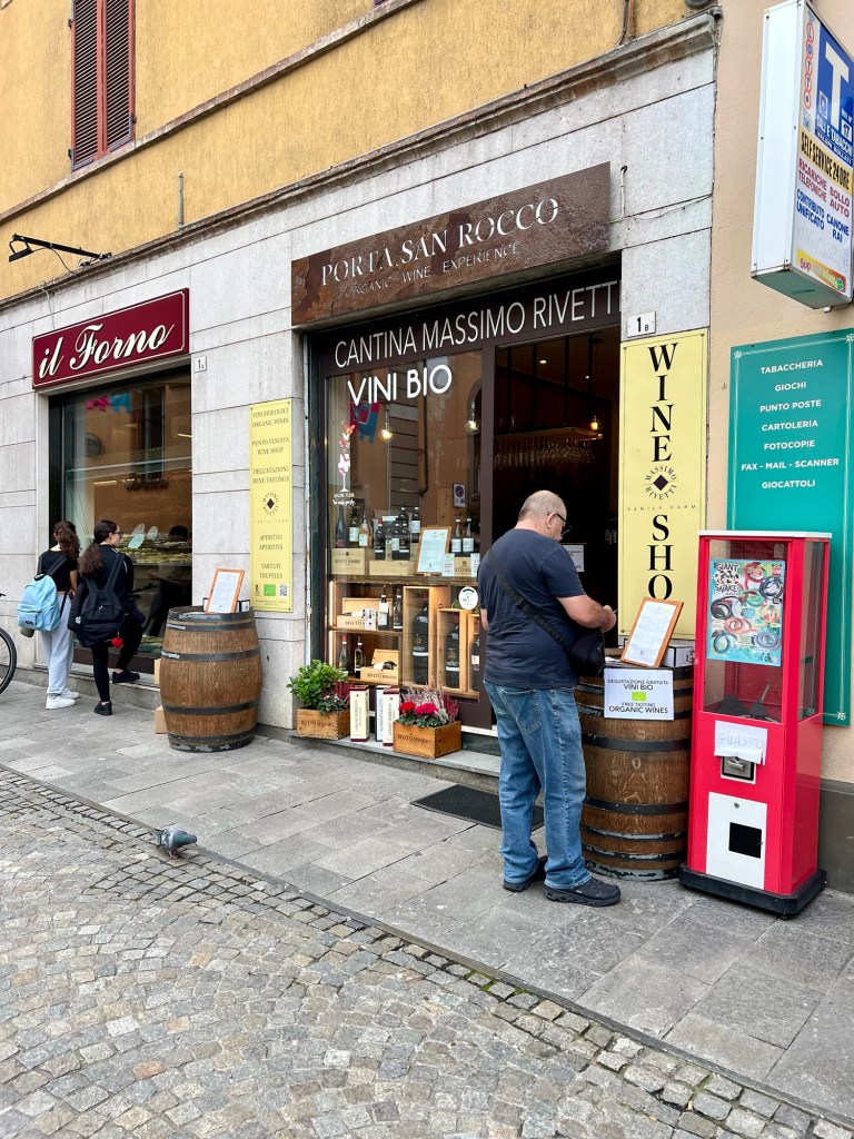 The young woman working in this shop heard us talking and came out to chat with us – she could speak perfect English which is always helpful. We both tasted some of the wines here, including a Pinot Noir – something rare here, but we left with a bottle of the 2020 Barbera d’Alba Superiore. Mick really liked the Barbaresco wines here as well, but I had to remind him that we are heading to France tomorrow and that it was probably not a good idea.