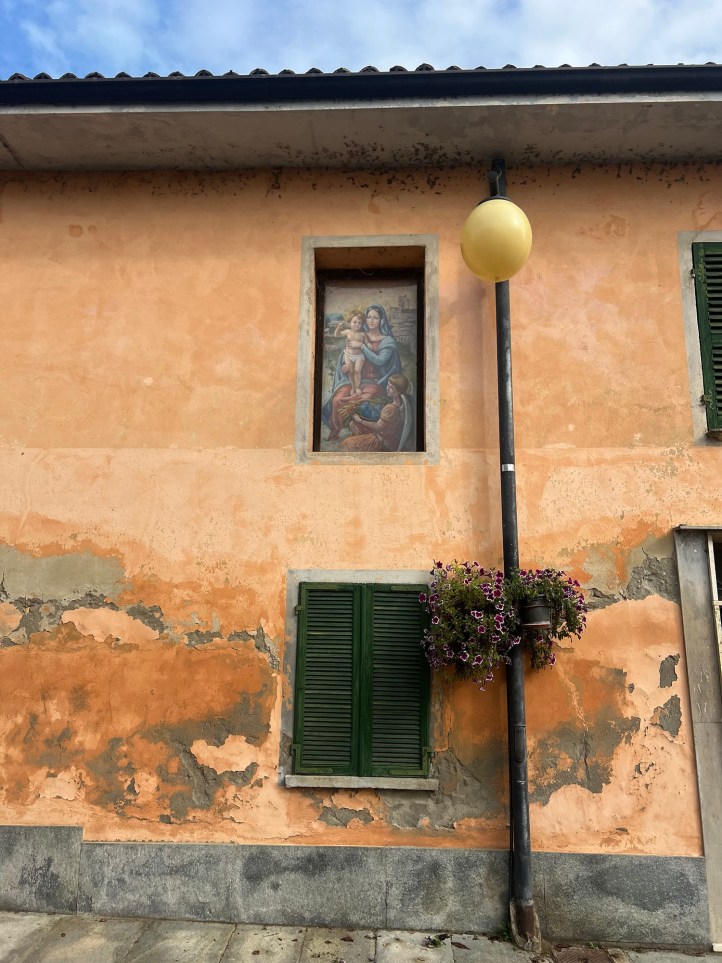 Almost opposite our accommodation is this old building with a beautiful painting in one of the window frames.