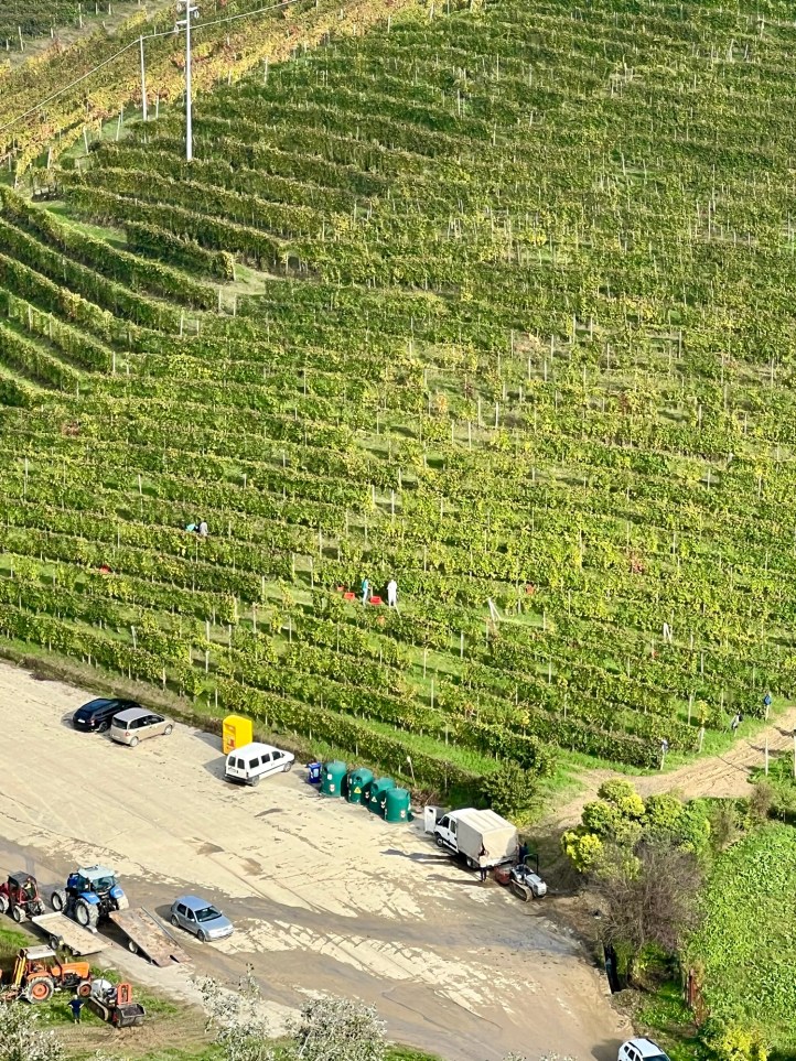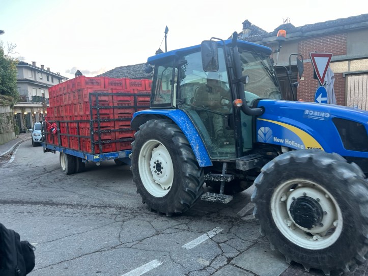While sitting there, on the edge of the road, we had to hold our breath and breathe in as a tractor loaded with freshly picked Nebbiolo grapes trundled by towards one of the wineries in town.