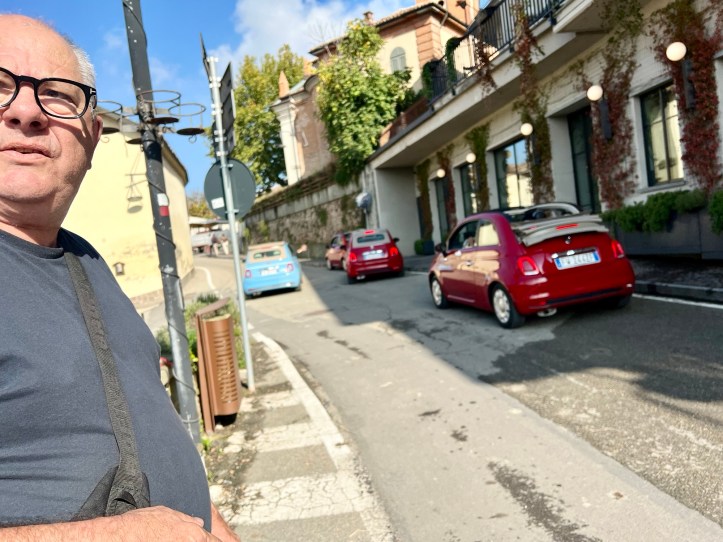 On our walk back to our accommodation, other visitors to the town were finsihing their lunch too. There was obviously a tour group, again they sounded American, who had booked a special tour that involved being driven around the region in small, mostly red, Fiats. (Note: Turin, which is not too far away, is the home of Fiats).