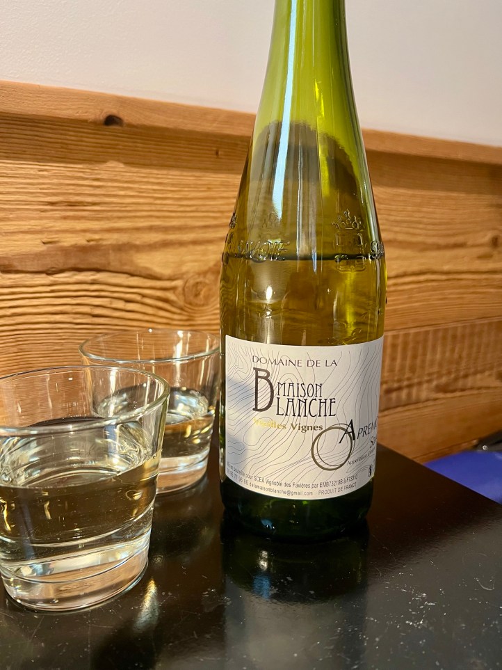 Mick was in search of a bottle of local wine, and while he did not buy one here, he found another gentleman selling his wine. He offered us a taste of his only white wine – which was labelled as ‘Apremont‘. I asked about the grape used for this wine and he explained that it was made from a local grape called Jacquère.