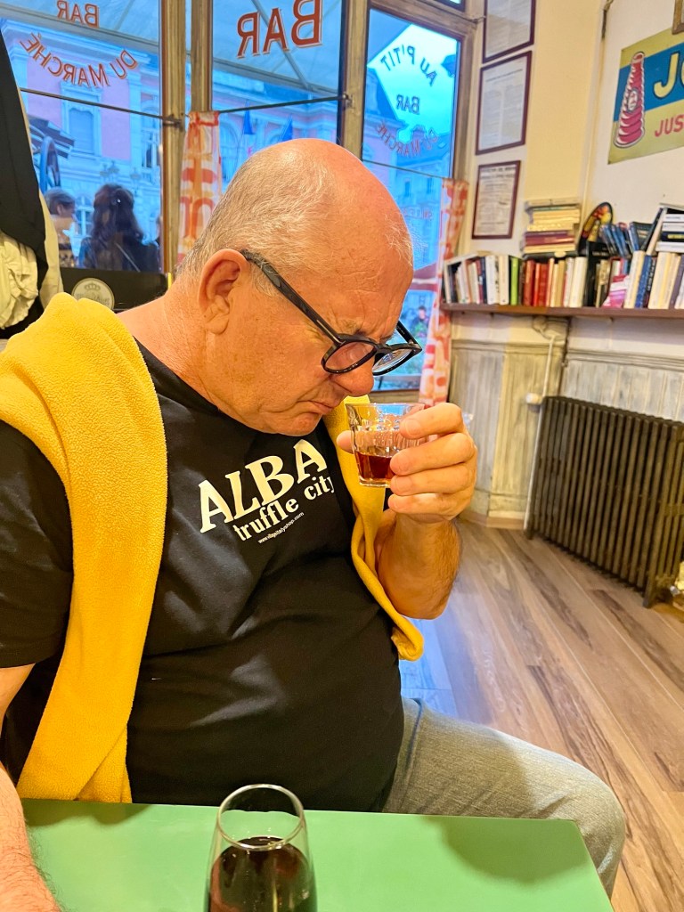 Then I tried the rosé from the region made from Gammay – and it was ok. And, only OK. The waiter gave us a taste of the local spirit, obviously picking up that we were connoisseurs of fine wines.
