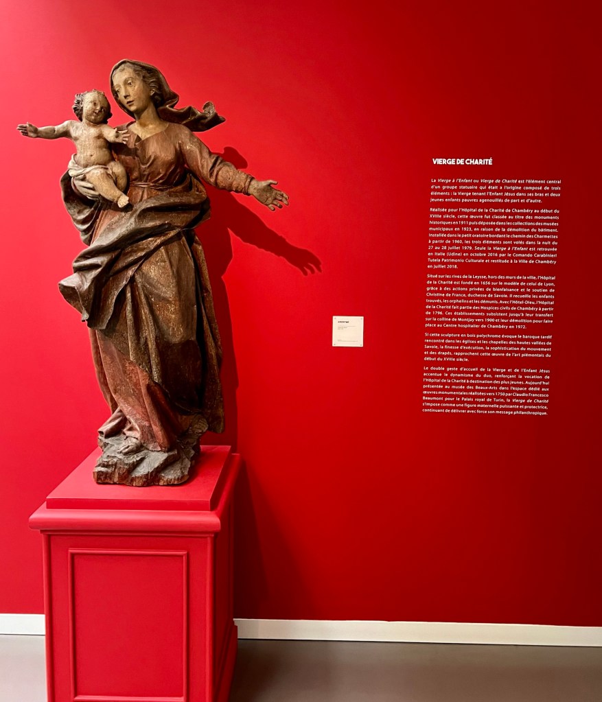 The statue of the Virgin Mary was one of three statues of the Virgin Mary, each depicting a different pose, was made for a Chambéry hospital in the early 18th Century. The three were classified as historical monuments in 1911 and were installed in the city’s museum when the hospital was demolished. But then comes the drama – all three were stolen in 1979 and only this one was found, in Italy in 2016, and returned to Chambéry in 2018. A great story.