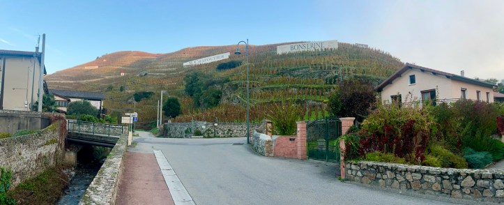 I recognised a few names on this hill, but not all of them. The Côte Rôtie is the coolest Appellation d’Origine Contrôlée (AOC)*, and the wines grown here on the slopes near the river are shielded from the Mistral winds.