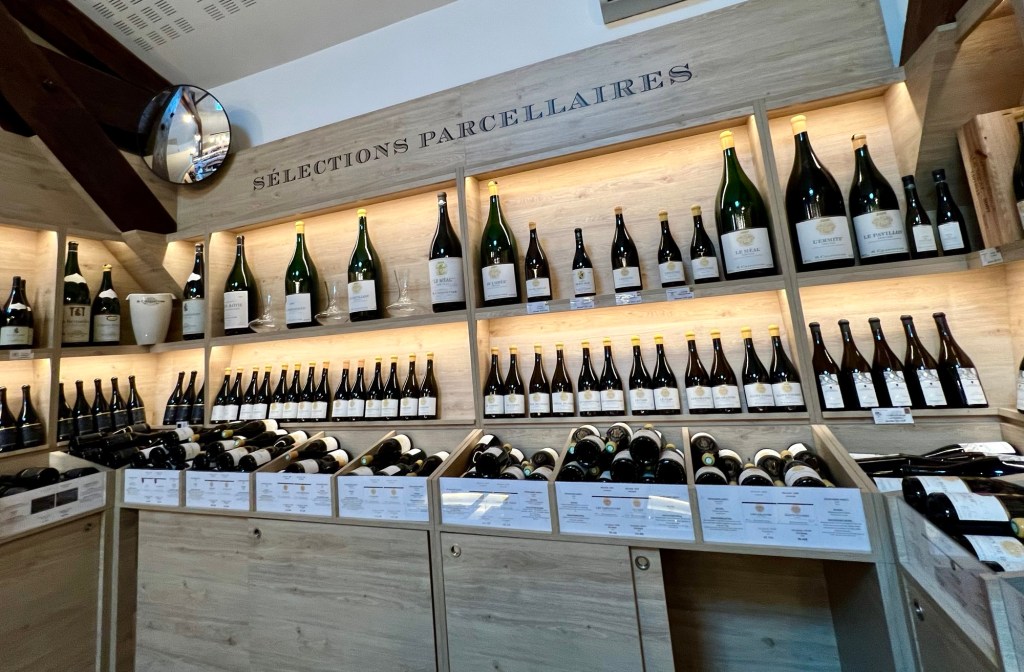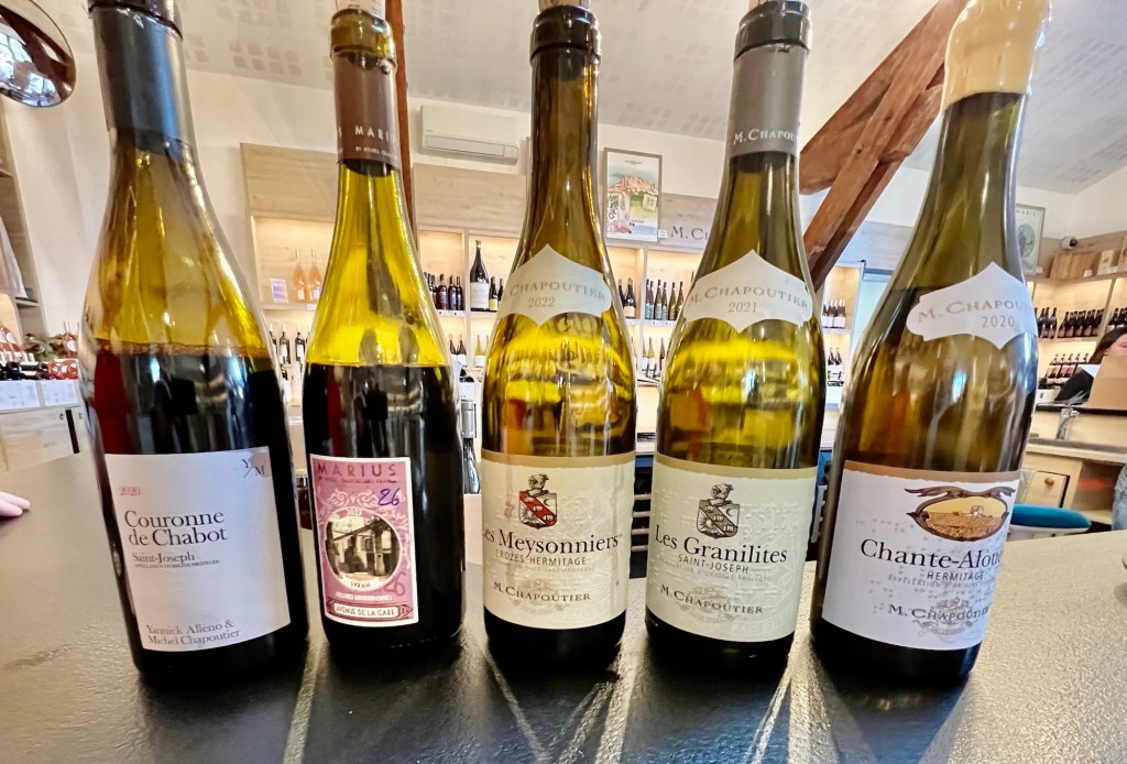 Quite a few people came in while we were tasting, and most of them knew exactly what they were after, and they were buying it by the half dozen, at least: Marius. Named after M Chapoutier’s father (I think the young man said). And it is their base label with prices starting from €5,20 and the Syrah we tried being the most expensive at just under €9. But it was a “no” from both of us.