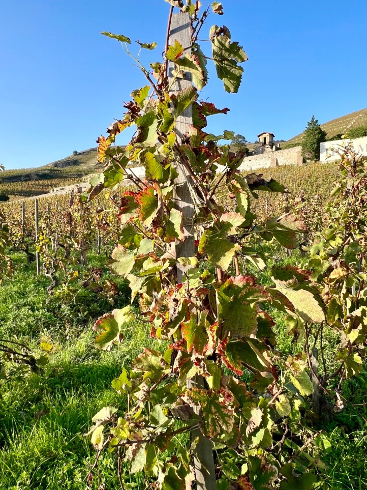 We learnt from this man that the way the vines are trained using wooden stakes or échalas; an ancient tradition suited to steep slopes and the weather conditions.