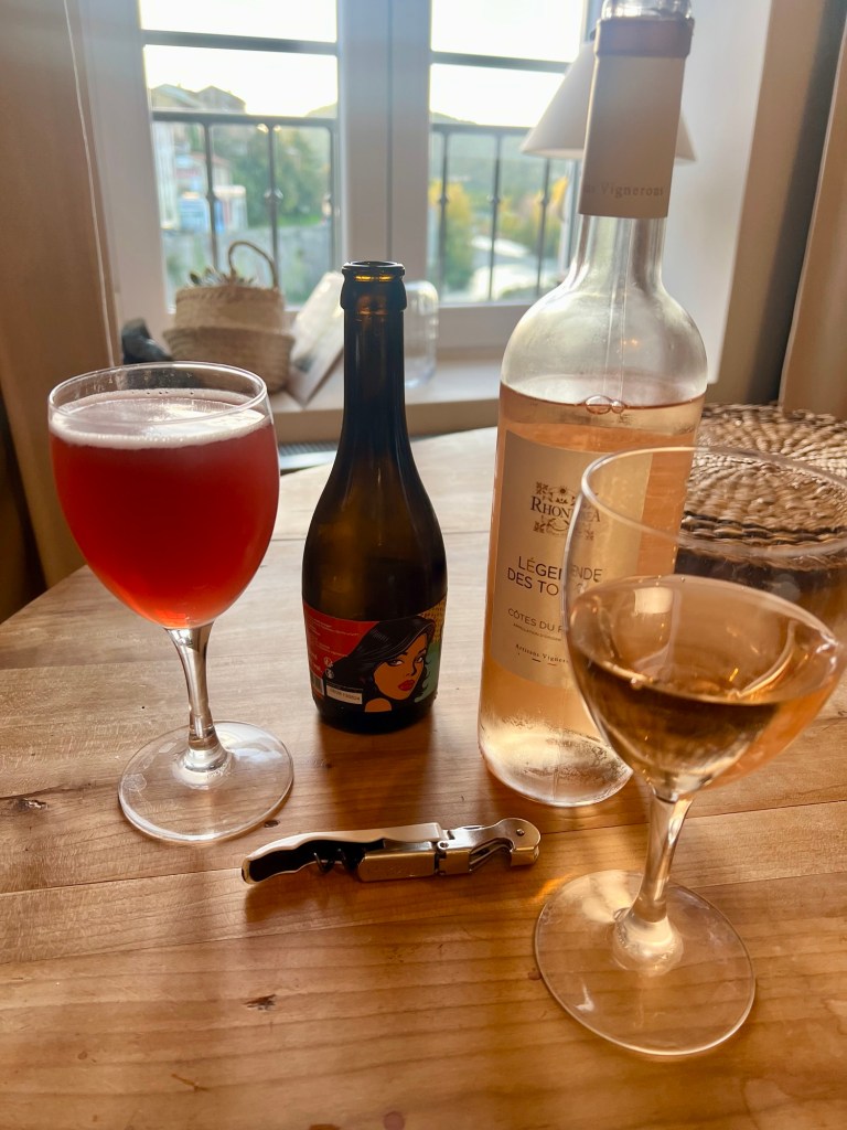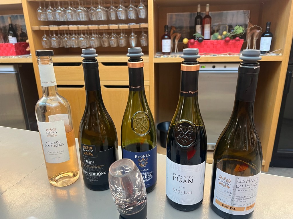 We left here with a rosé made from Grenache, Carignan and Caladoc (never heard of it before) – which was typically Provence in colour, plus a bottle of red wine made with Grenache (50%), Syrah (40%), Carignan (10%). Both excellent and well priced.