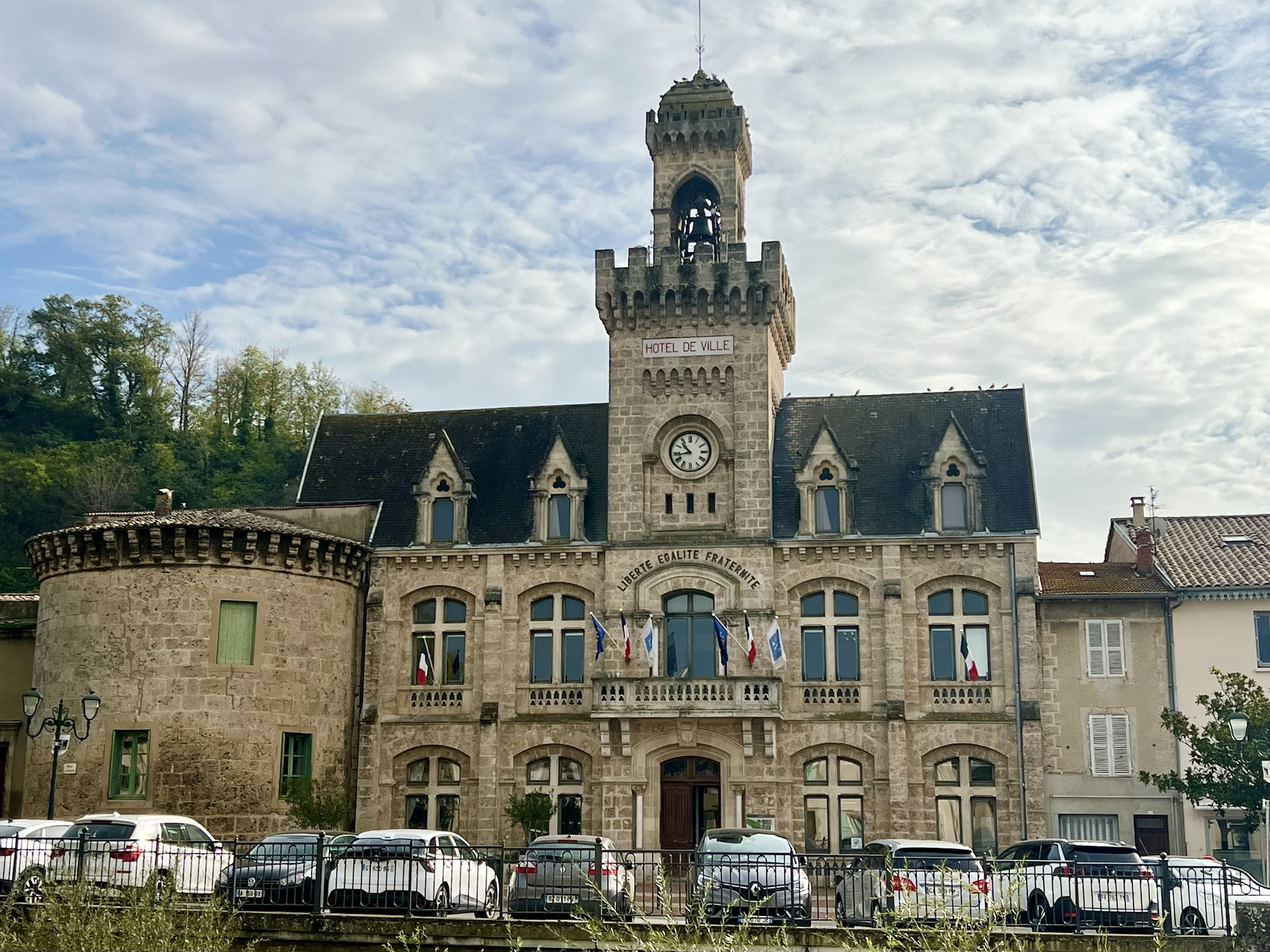 We found a park outside the Marie, which was very impressive. Every single village in France has a Marie and a Monsieur Le Maire or a La Maire.