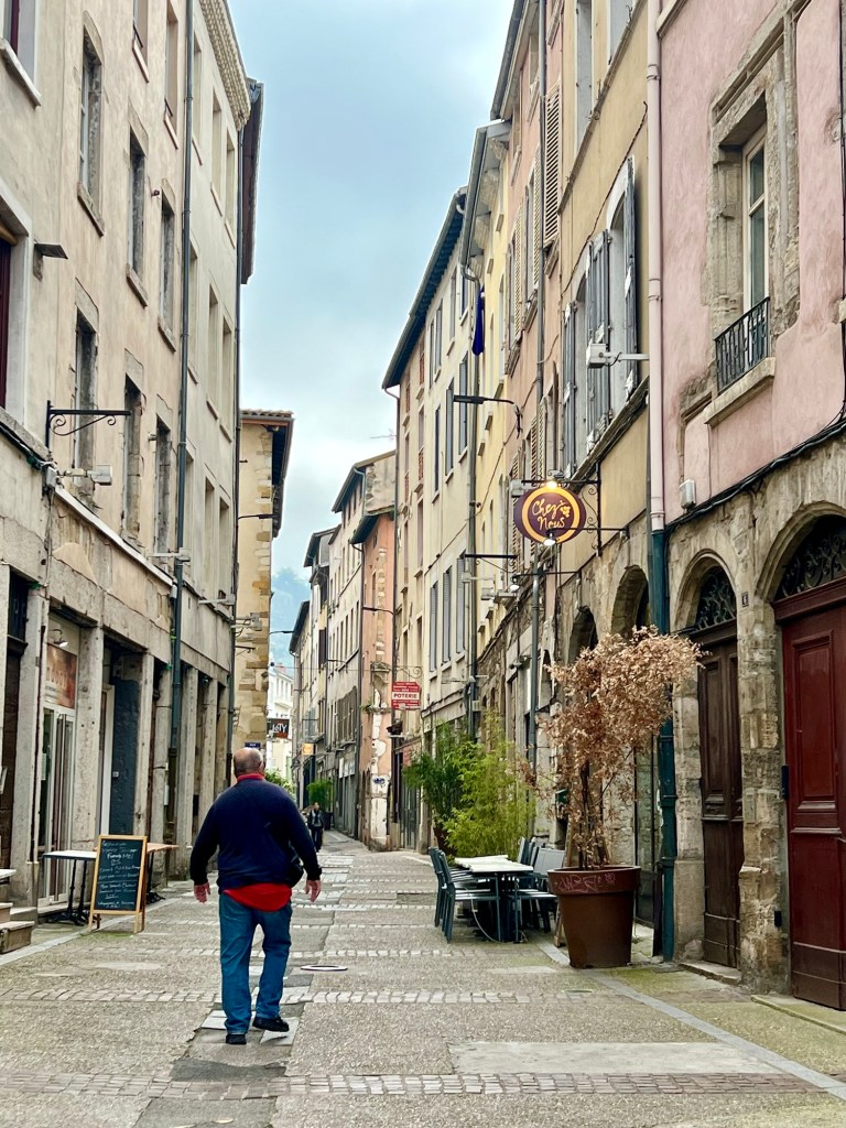 Next stop was Vienne so we could charge the car while we had some lunch. The EV charging station I’d picked was available, and we felt safe leaving the car as it was in front of the Gendarmerie.