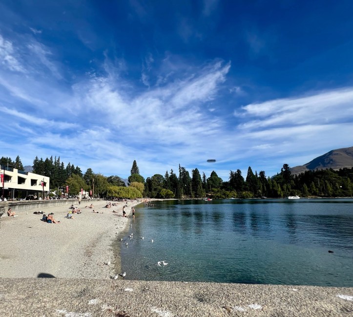 There is a beach in Queenstown – nothing like we find on the Sunshine Coast in Queensland, but people were enjoying it nonetheless.