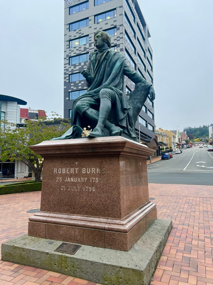 Seated almost centre stage above the town square, called the Octagon, which is an eight-sided plaza – something else Dunedin is famous for, but a nightmare to try to navigate in a car, is Robert Burns – who was well dead before Dunedin was even thought about.