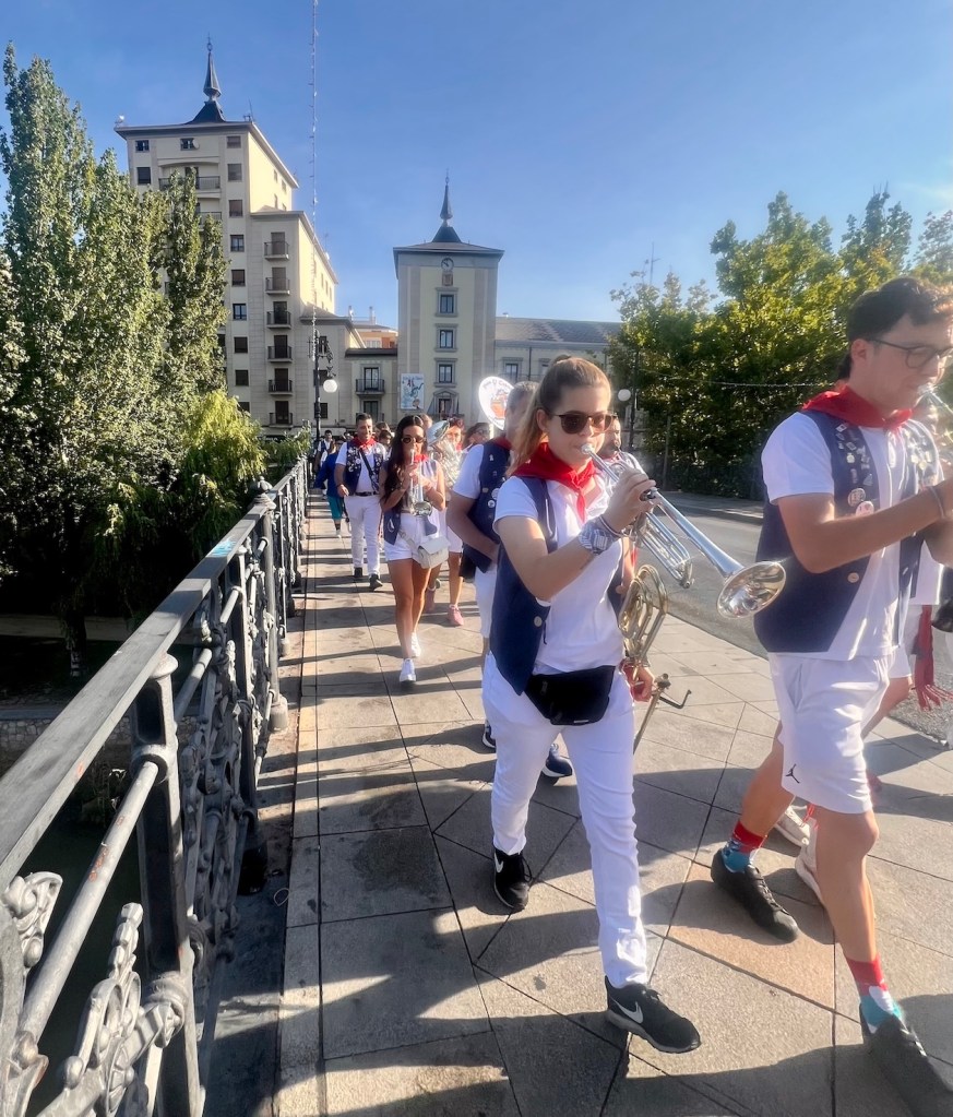 Before we went for our wine tour, we had walked into town for a coffee and had to get out of the way of one for the Peñas, who were marching across the bridge in the same direction as the group I saw yesterday.