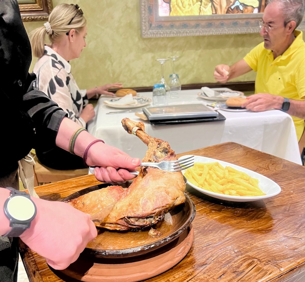 We managed to get quite a few steps up on this excursion, and decided we needed to reward ourselves by trying the local dish of lechazo asado (roasted lamb). Pronounced lay-chath-oh.