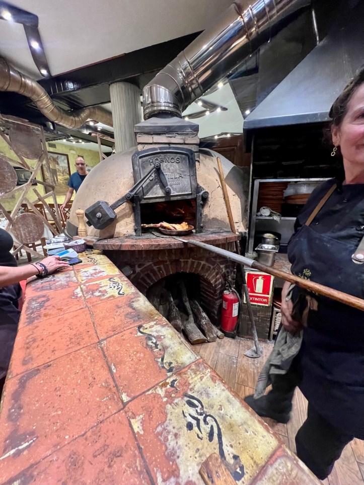 This woman was amazing. We had seen her when we came for our first dinner and she was very friendly to us then, and seemed to remember us today. She must work at least 12 hours here a day, cooking everything from chops to the baby lamb quarters, as well as roasting red peppers (capsicums) by the dozens over an open flame beside her wood-fired oven.