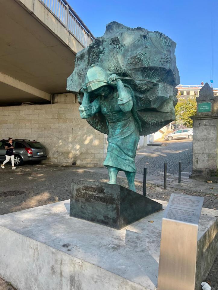 The plaque beside the statue explained that this statue depicted one woman carrying 40-60kg of Gorse (carqueja) – which is a shrub. Hence the women were called Carquejeiras.