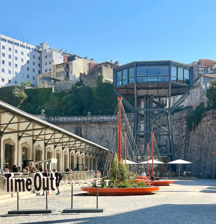Part of the original São Bento Station has been renovated into an entertainment and dining area called Time Out. It did not have the same feel as the Mercado do Bolhão, which has another advantage for us, as it is a lot closer than here. In the background you can see a very modern structure, designed to blend the old with the new and representing the old water towers that used to be present in railway stations. It houses a restaurant.