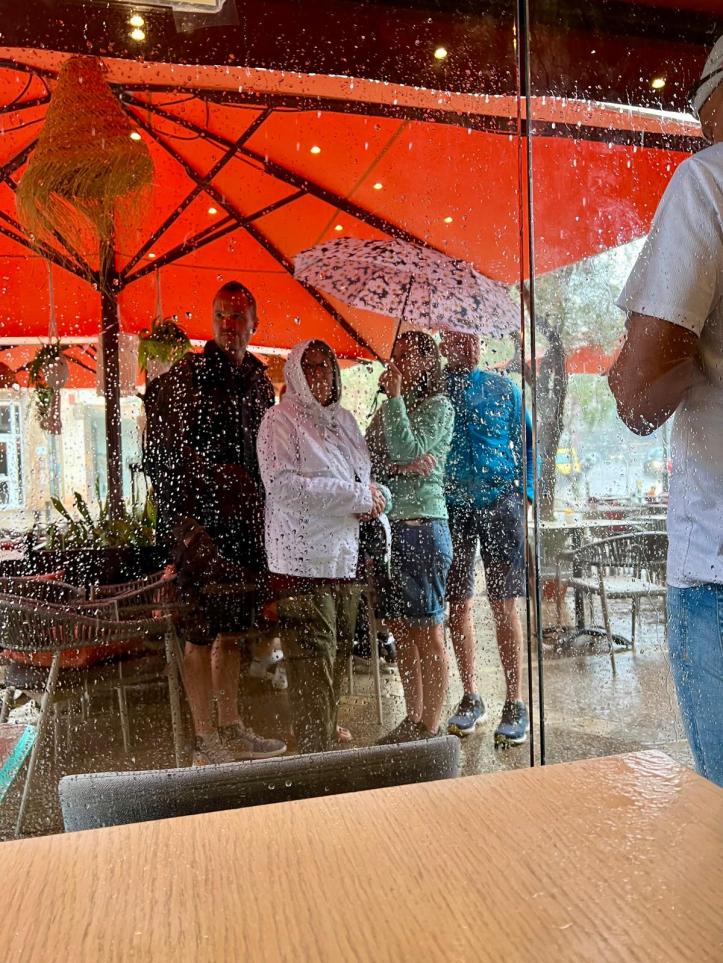 But not long after we sat down in the café, the sky opened and it started to pour – it was serious rain.